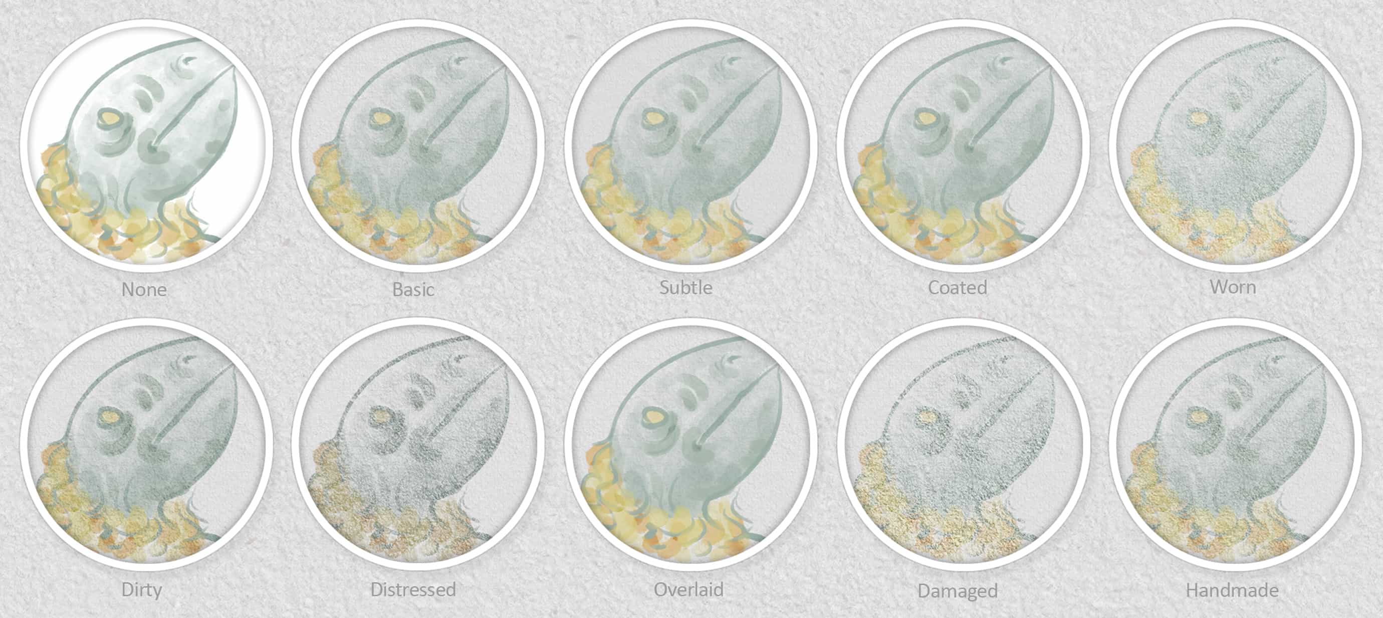 The Procreate version contains one style which is a combination of the "Basic" and "Subtle" styles.