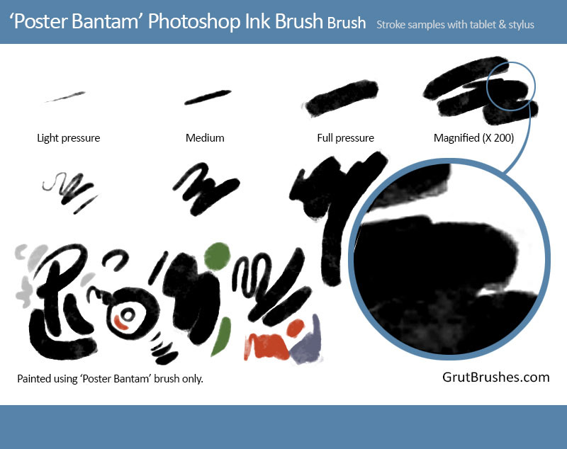 digital Brush strokes drawn with Poster Bantam Photoshop inking brush for digital artists