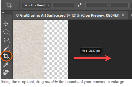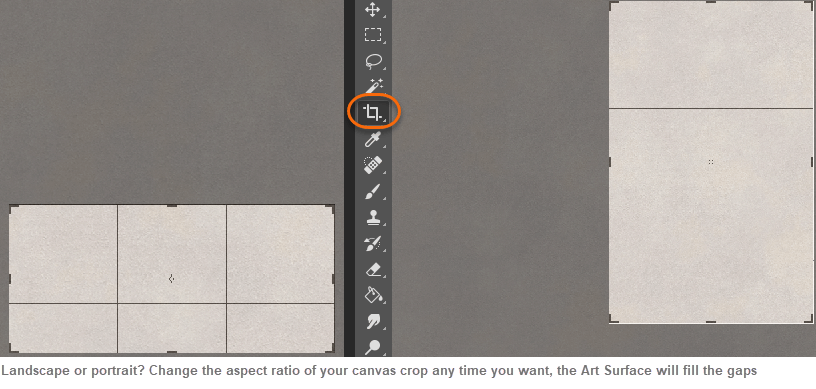 To reveal more of this infinite canvas, just select the crop tool and drag outside the edges of your canvas and hit ‘Enter’ Once you do that the Art Surface will expand to fill in the new space where the checkerboard pattern is.