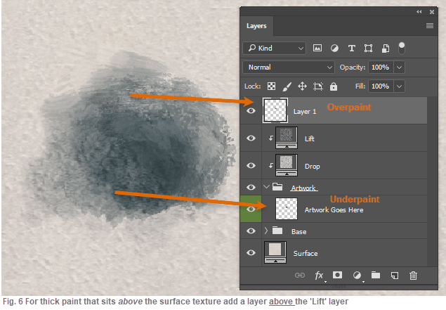 To add layers of thick paint, like an impasto oil paint or a thick pastel, add a new layer above the ‘Lift’ layer and paint in there (fig. 6)
