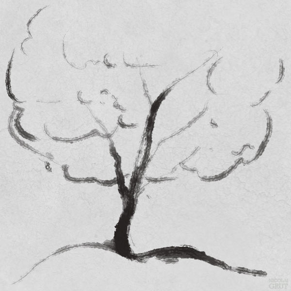 A scratchy ragged ink line brush pen with an intermittent line and the occasional frayed edges from stray bent bristles.