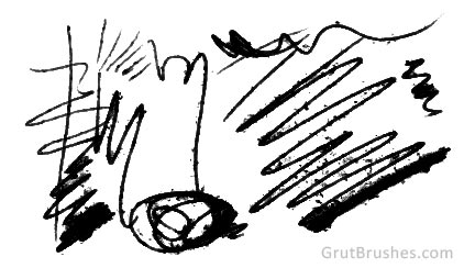 A thin leaky ink pen that sprays fine droplets along its edges. Multiple passes and changing the stroke direction rapidly increases the ink splattering while slow single direction strokes produce cleaner lines with less ink mess.