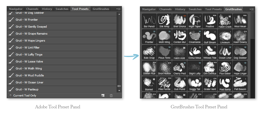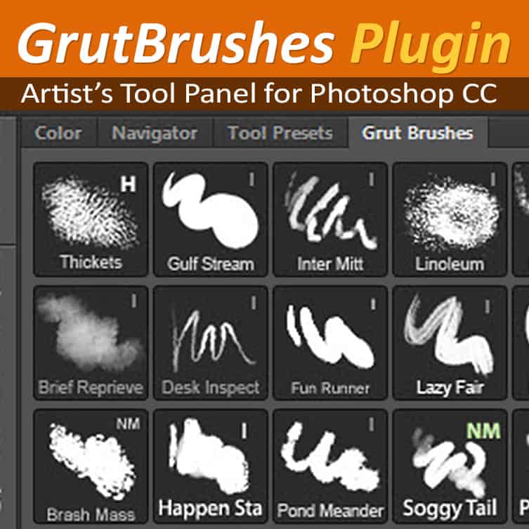 A Photoshop plugin that puts your GrutBrushes into a panel right inside Photoshop! (Photoshop CC only – use TPl files in CS)