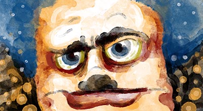 Clown painting painted with the “Swab Caress” real watercolour Photoshop brush for digital artists