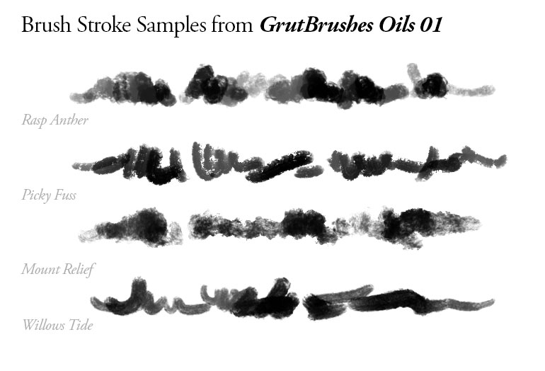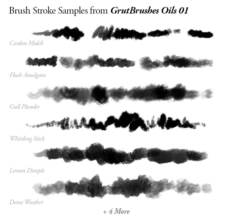 A set of 10 pressure responsive oil paint brushes for Photoshop.