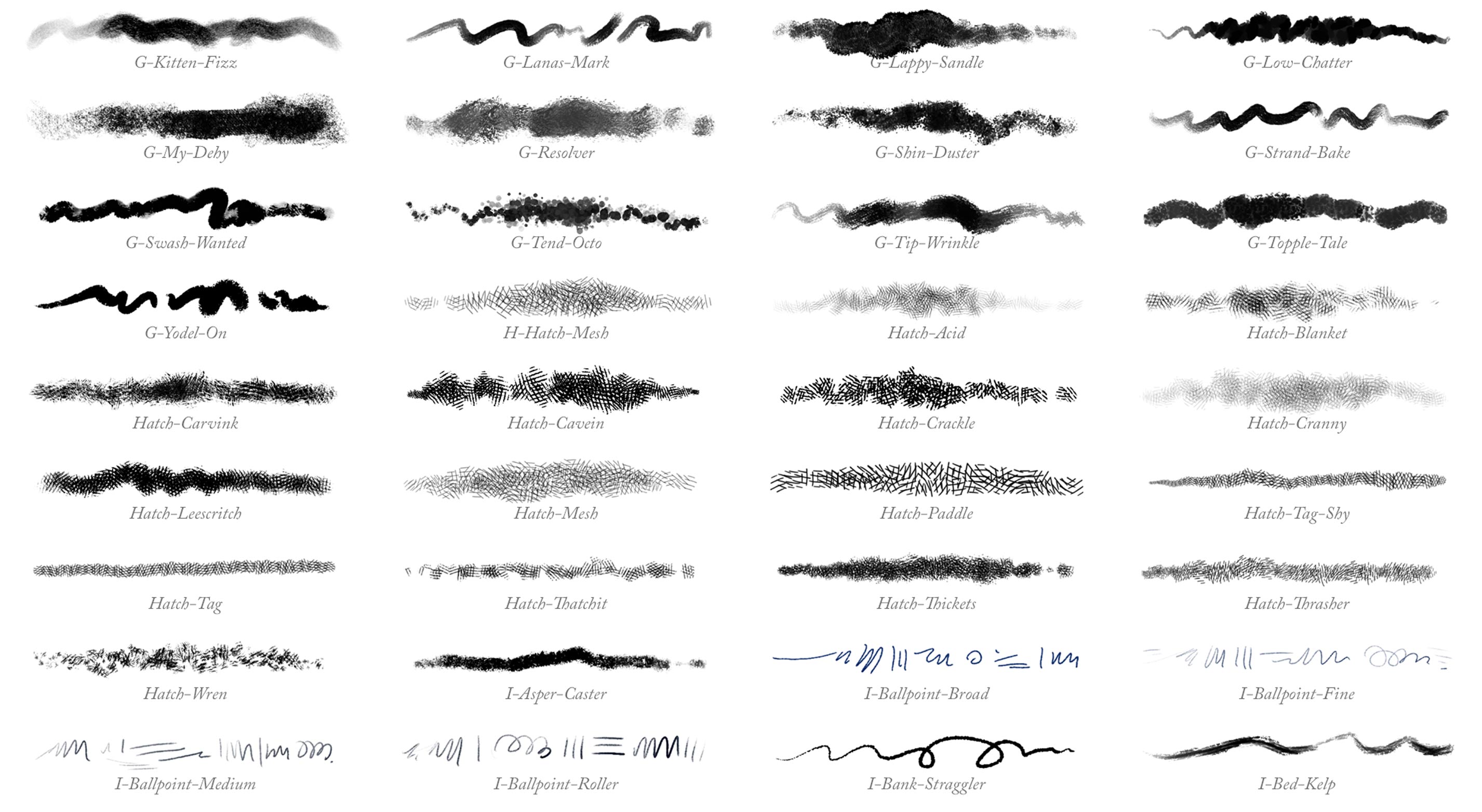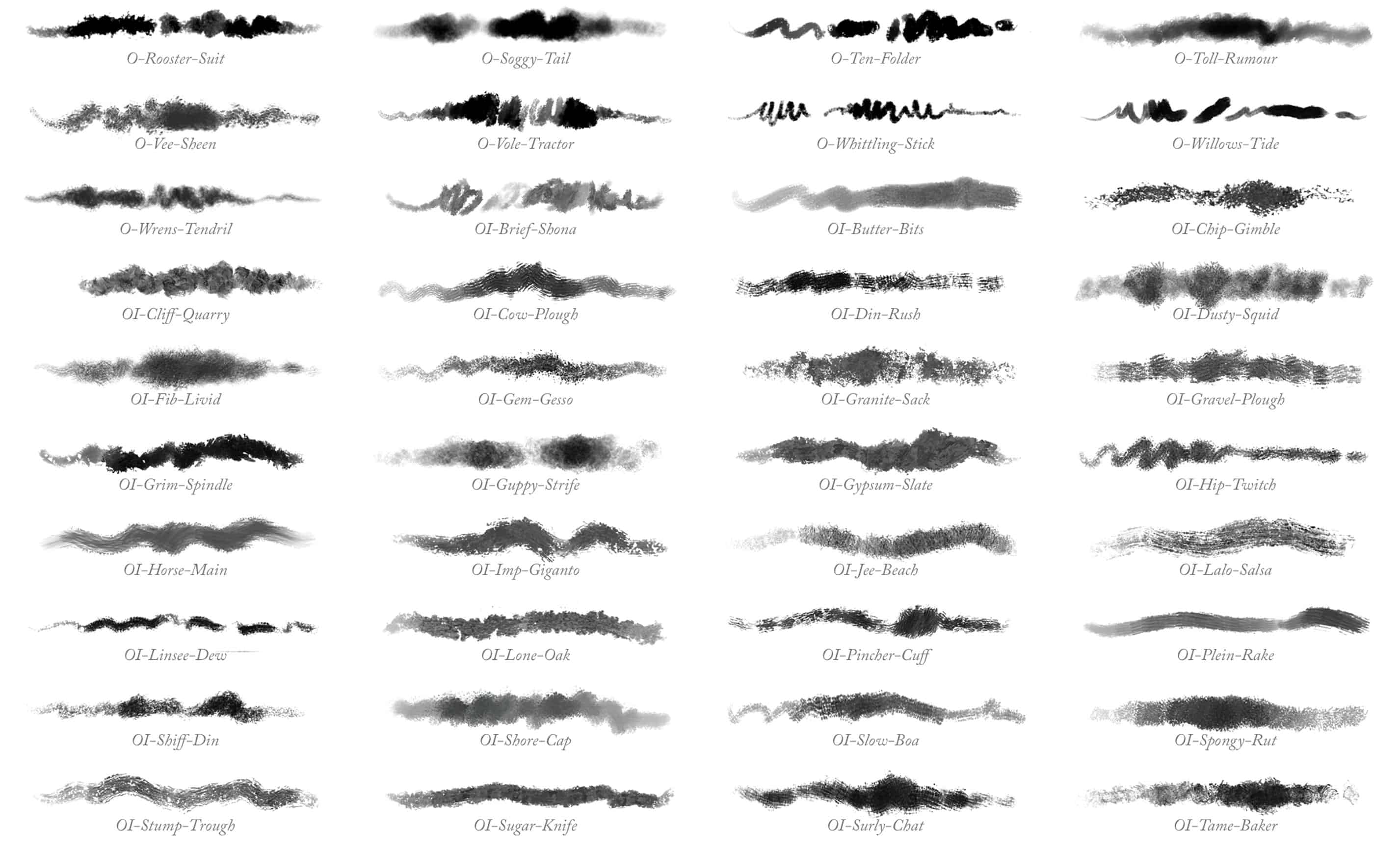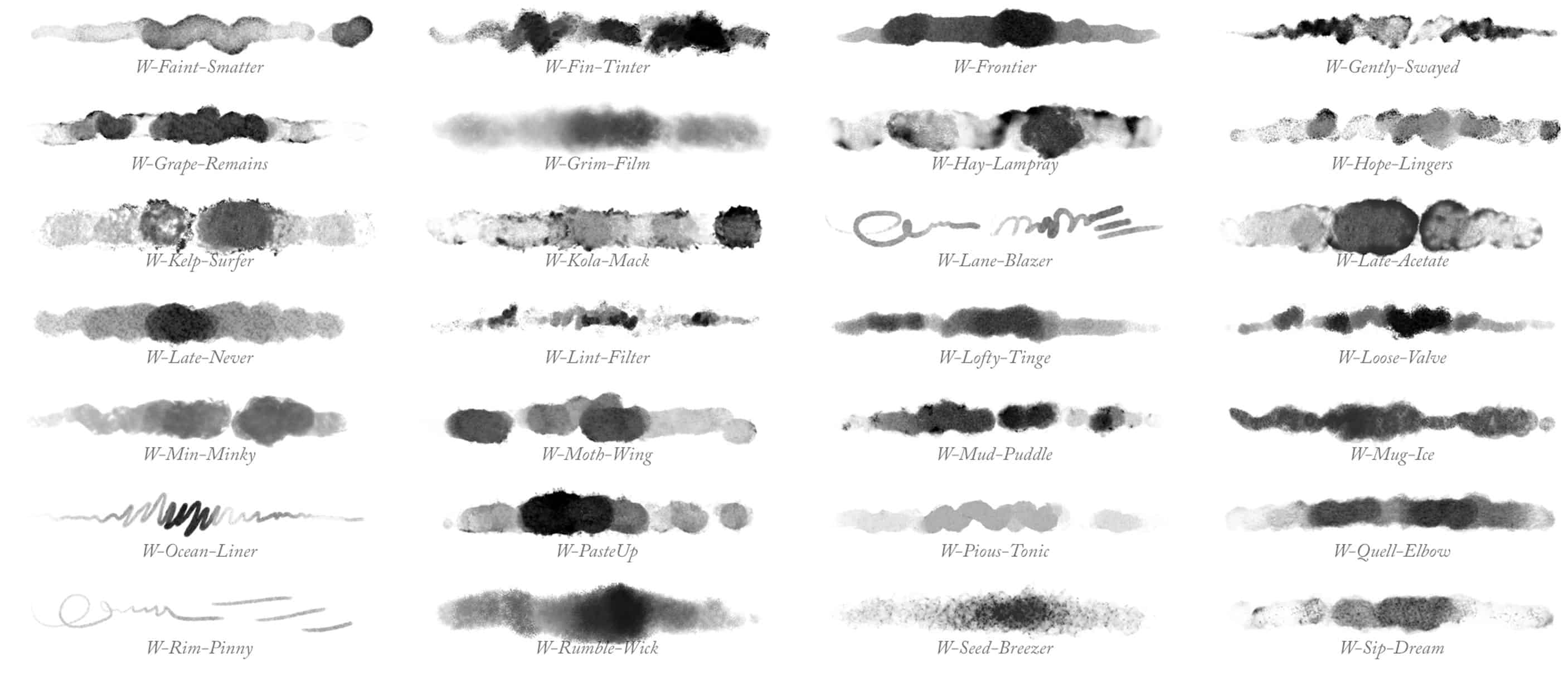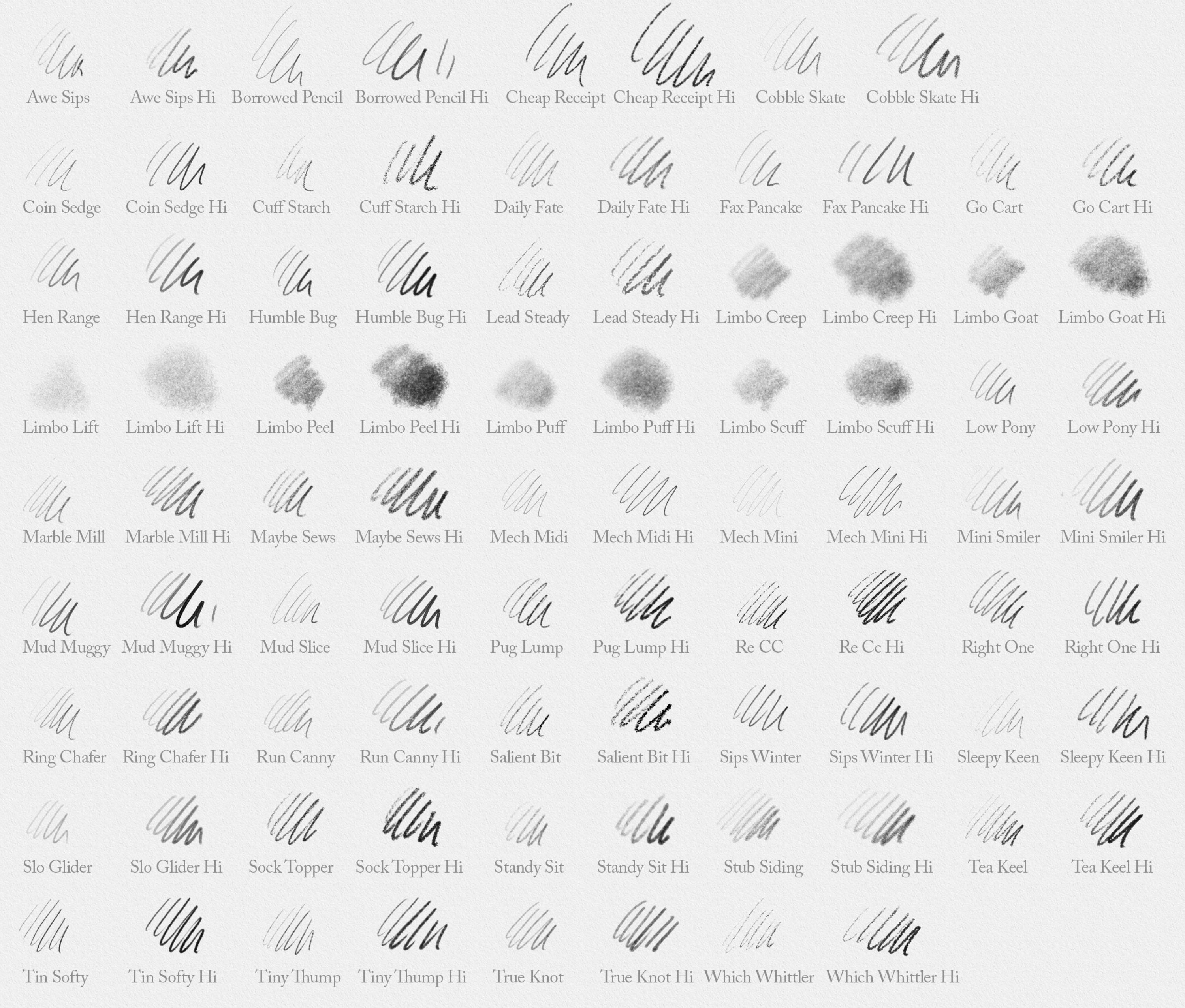 GrutBrushes Online Brush Stroke Reference All these brushes below (and more) are included in the Art Brushes Complete set! Download PDF Photoshop Pencils Updated periodically. Current as of October 16th 2019