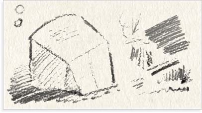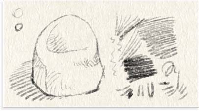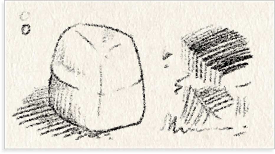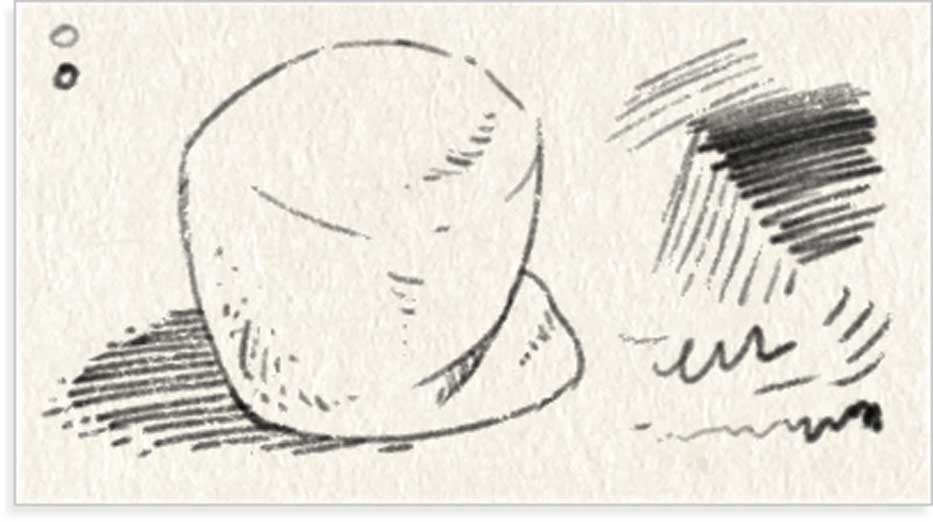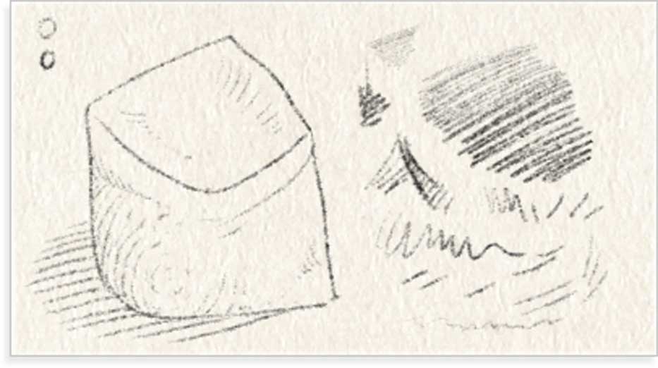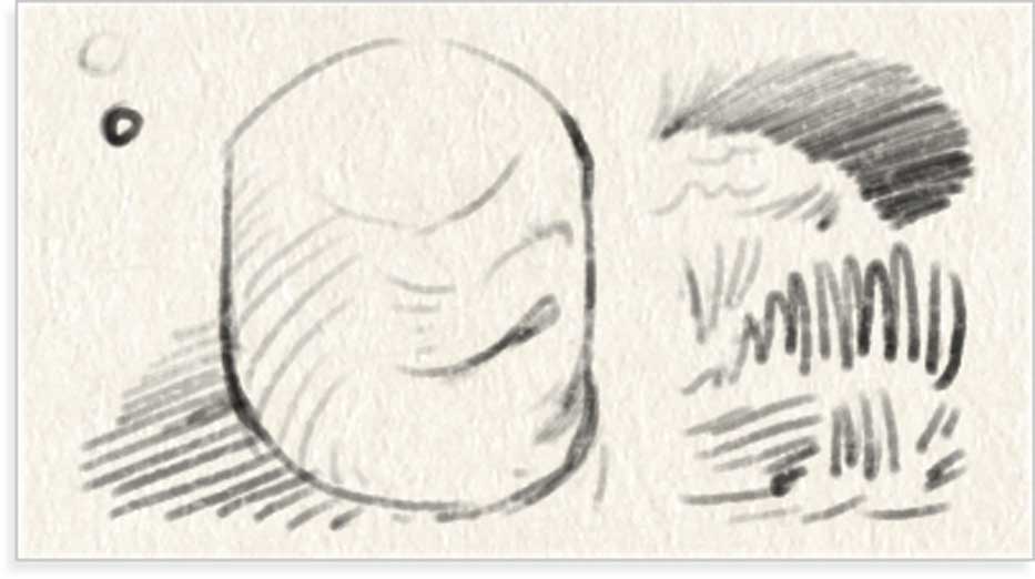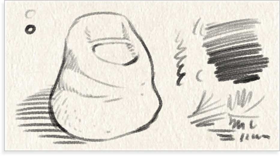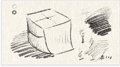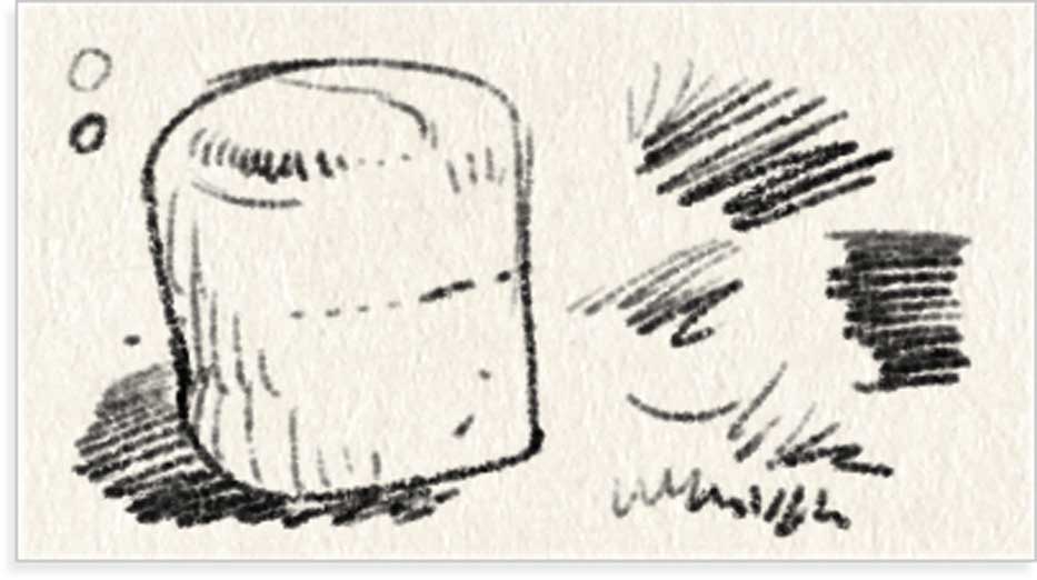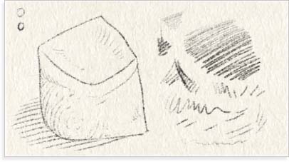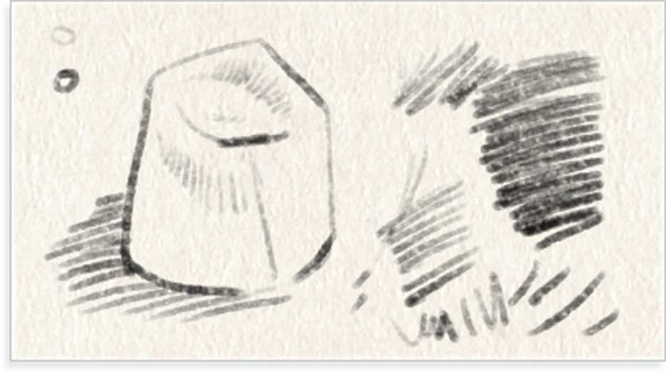 A stark, clumsy pencil with a crumbly texture. While best at broad strokes and defined form building, this pencil is also capable of light hint lines, all of them grainy.