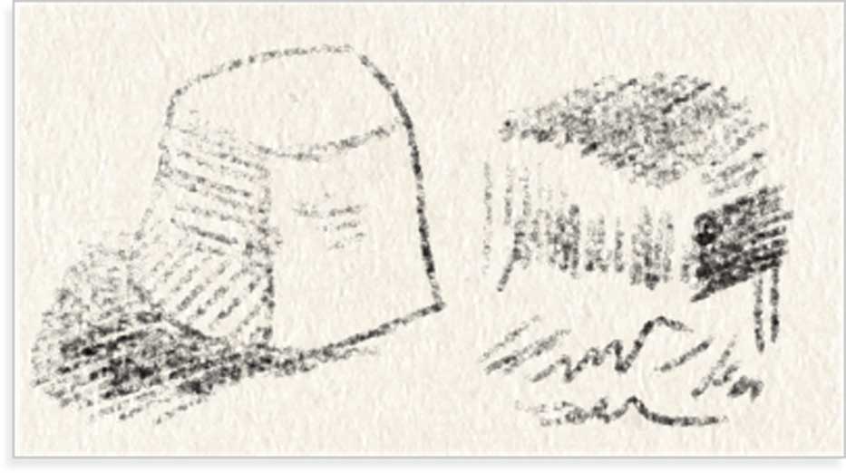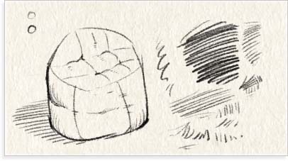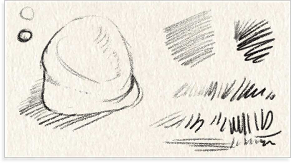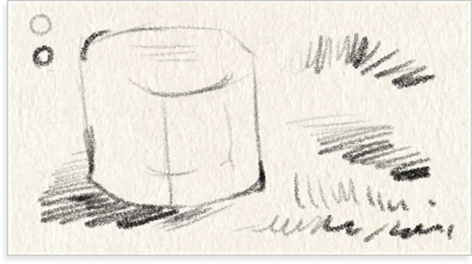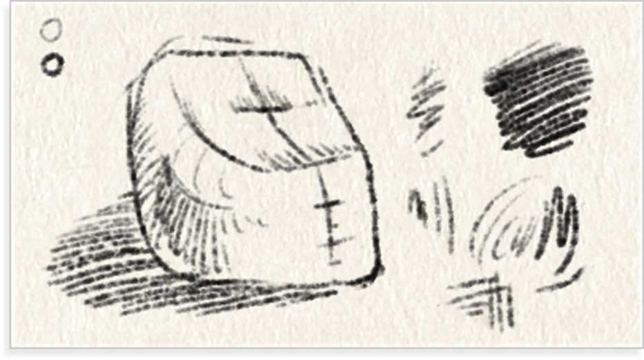 A very soft, dull pencil brush with a mid-range tone like those produced by very soft graphite pencils with a lower clay content. Suitable for sketching bold drafts.