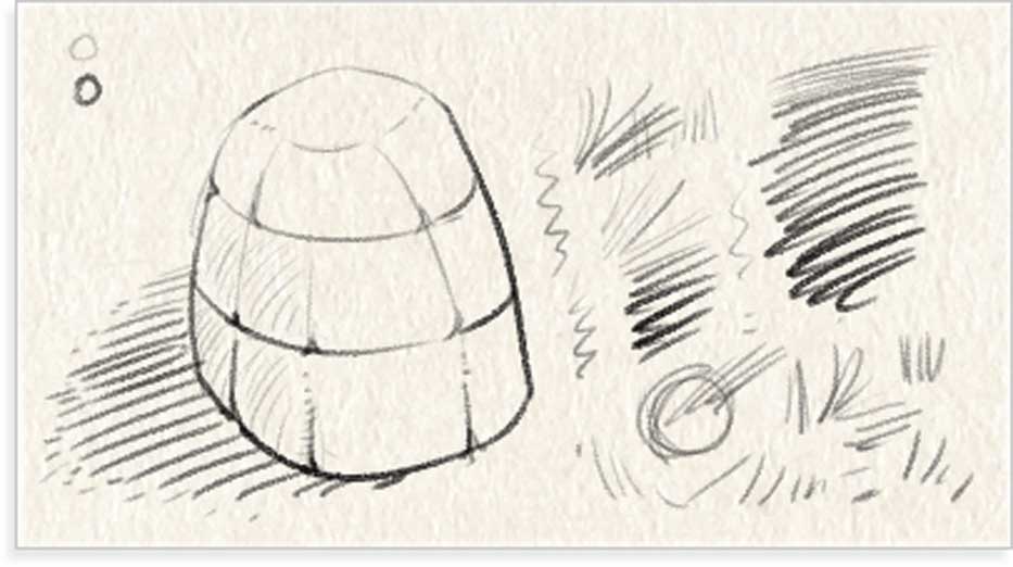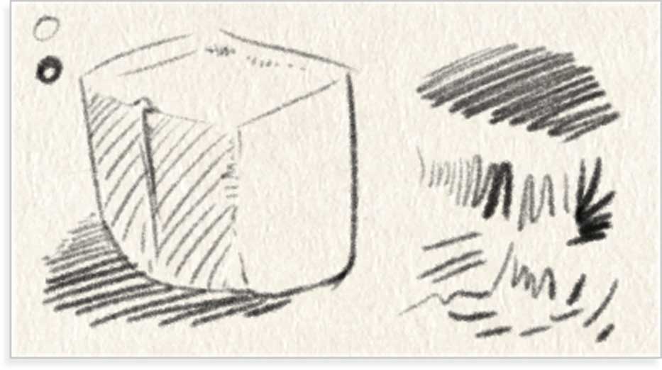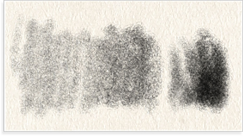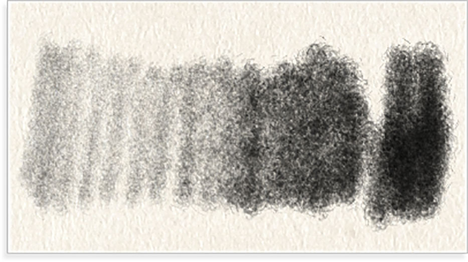 A soft and fuzzy 4B Photoshop pencil that starts out woolly at the low end and has an almost charcoal-like appearance at the higher pressure. This pencil is soft enough that it doesn’t take much force on the stylus to reach the darker ranges.