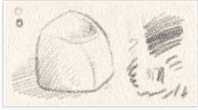 A Soft 2B pencil with a relatively well-defined line and a wide dynamic range from light to dark making it a good pencil to take you from a tentative sketch to a finished drawing. I like it because I can start sketching lightly and then lay down a stronger ‘final’ stroke when I’m sure of my form, all without switching tools or brush sizes.